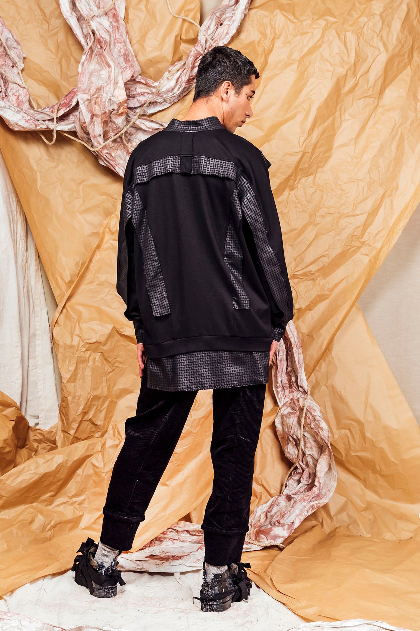• The back yoke seam extends into Magyar cut sleeves, with floating, raw edged panelling extending through the seamline, all the way to the sleeve cuff.