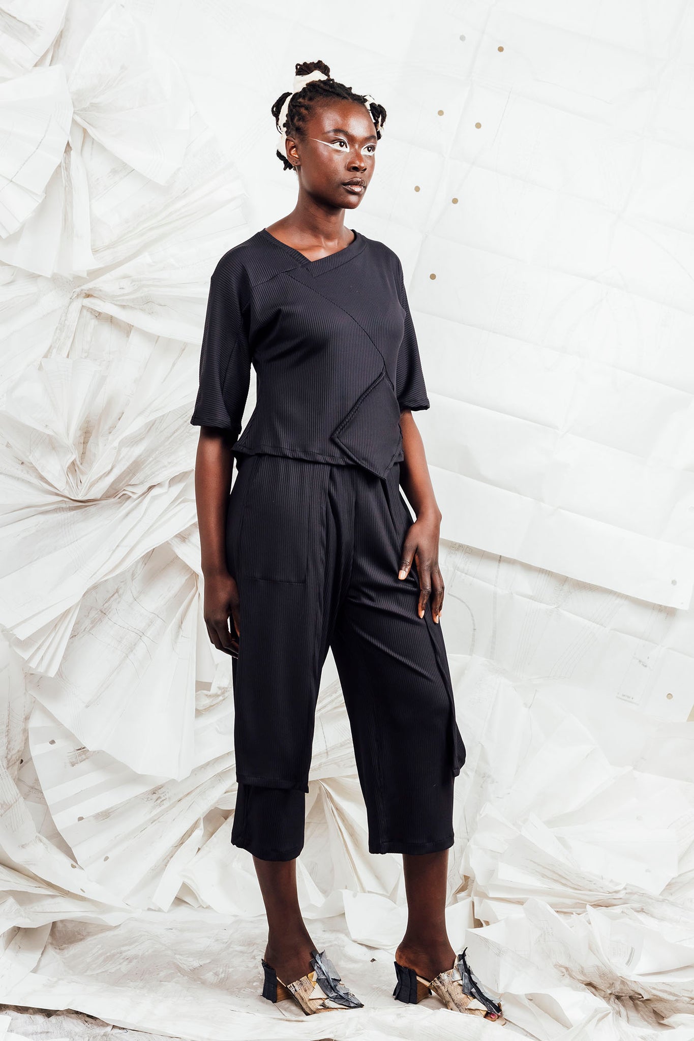 SL25 SUKI SHORT POCKET TOP - OBSIDIAN RIB